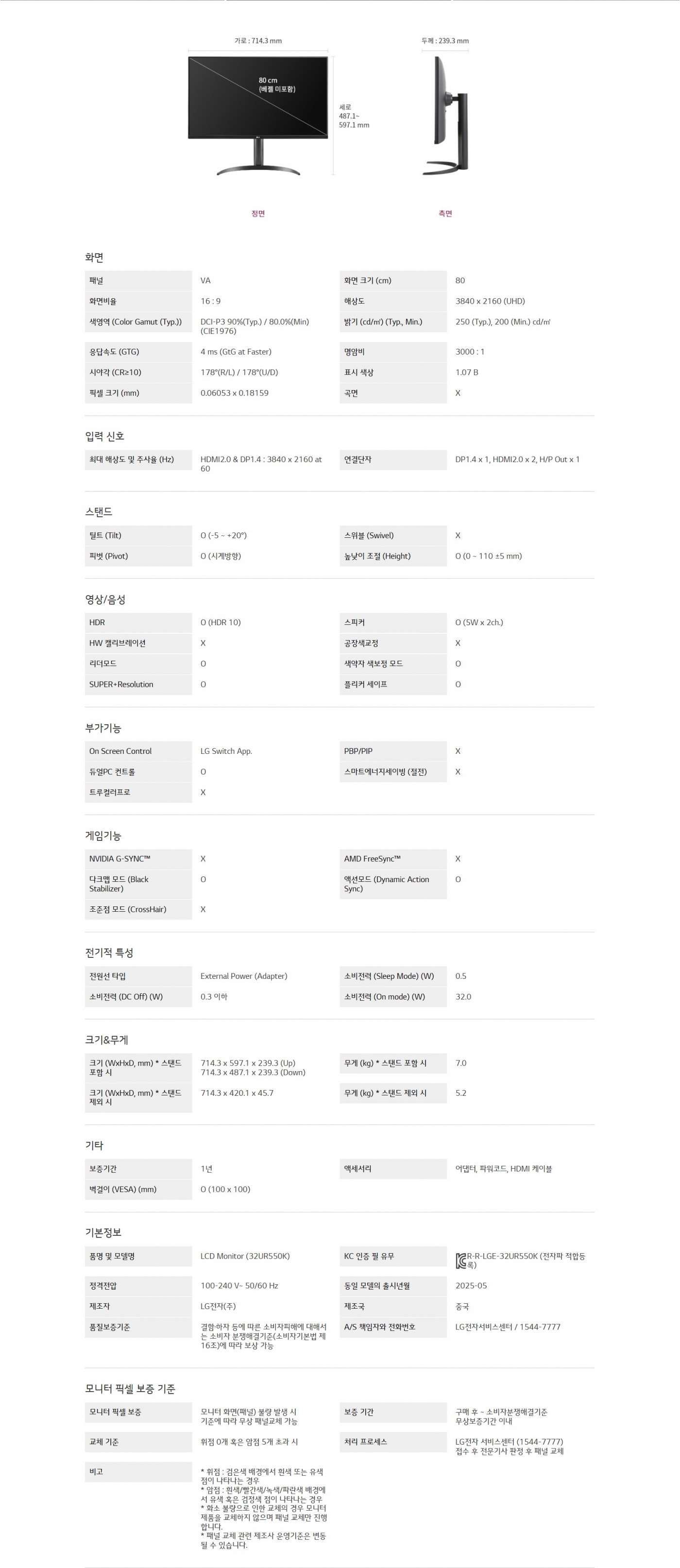화면 크기 (cm) : 80