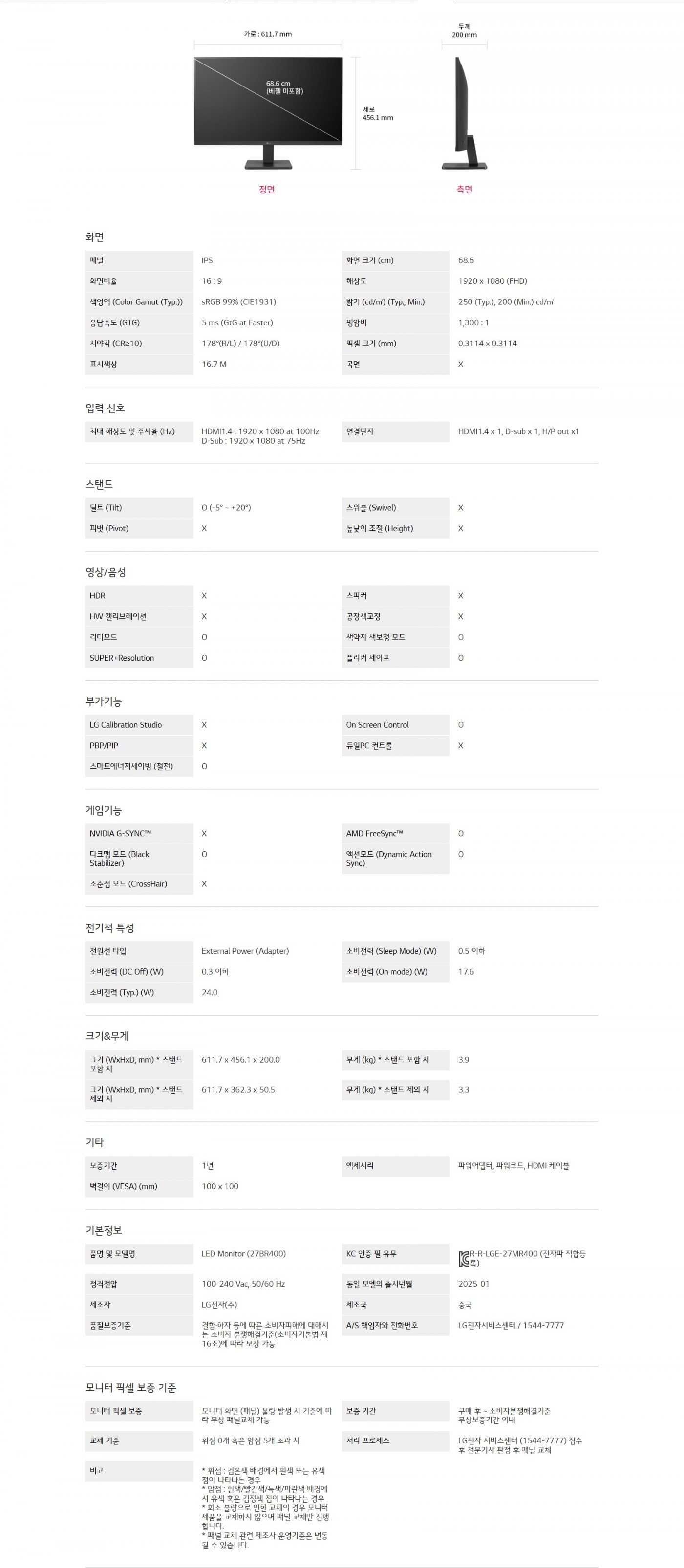 화면 크기 (cm) : 68.6