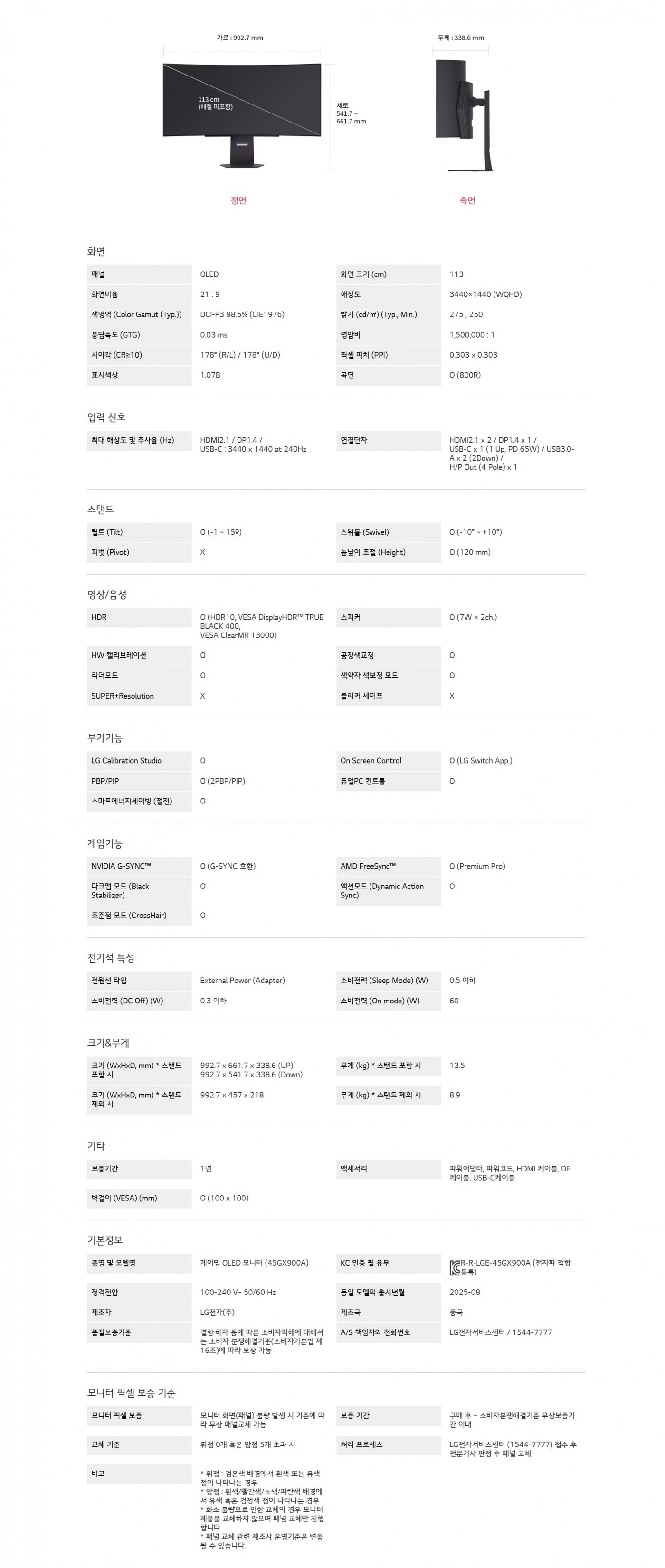 PC/모니터 LG 울트라기어 올레드 게이밍모니터 45GX900A