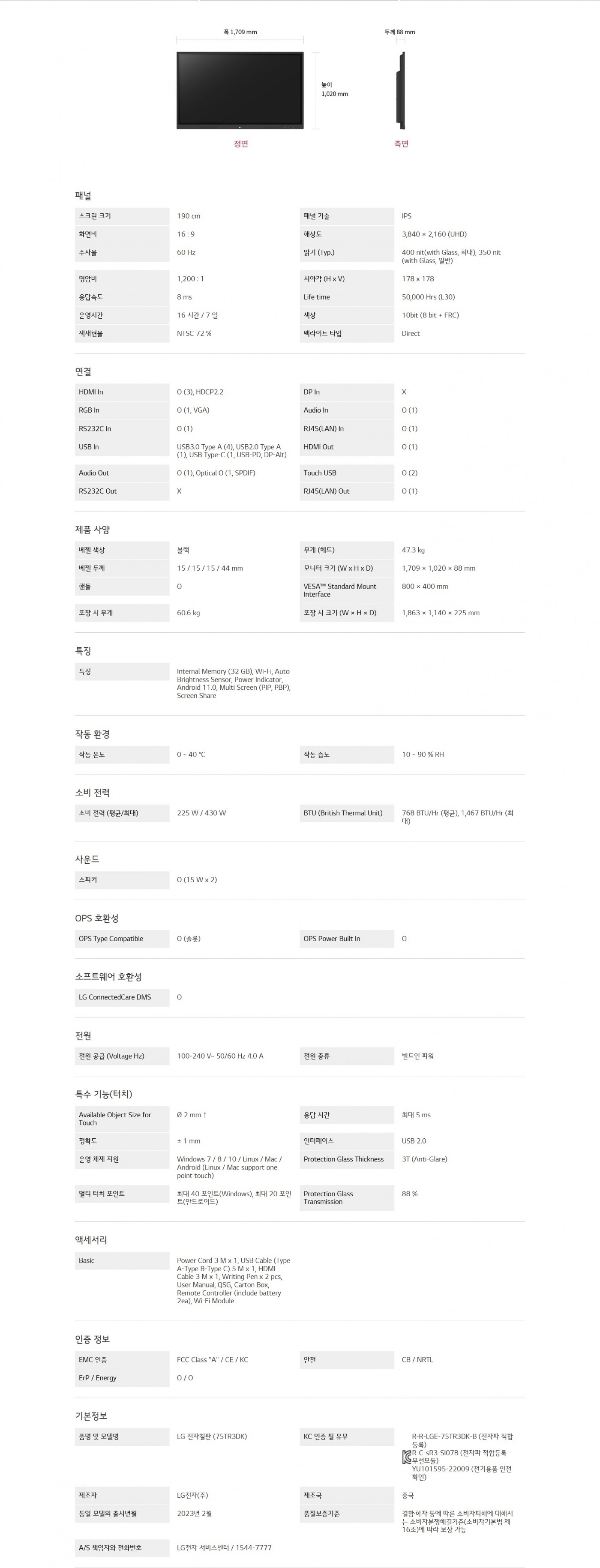 LG 전자칠판 + 이동형 스탠드