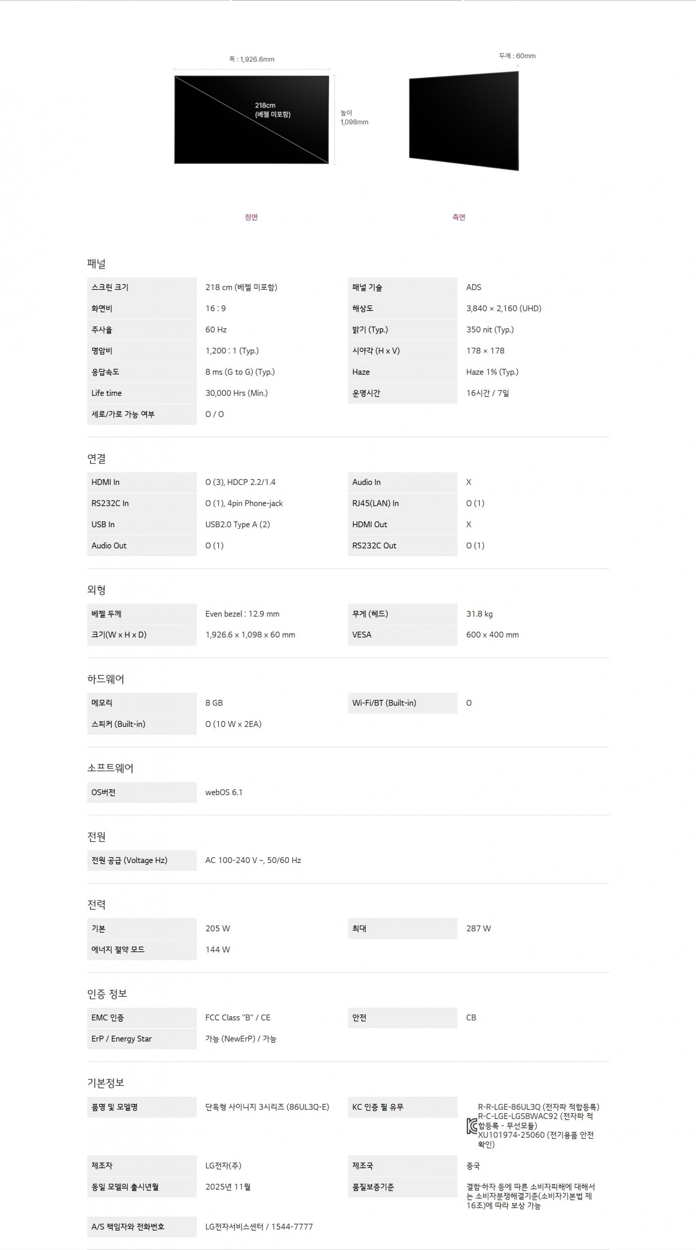 단독형 사이니지 UL3Q시리즈