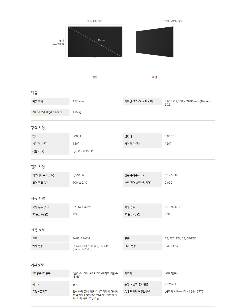 캐비닛 무게 (kg/Cabinet) : 155 kg