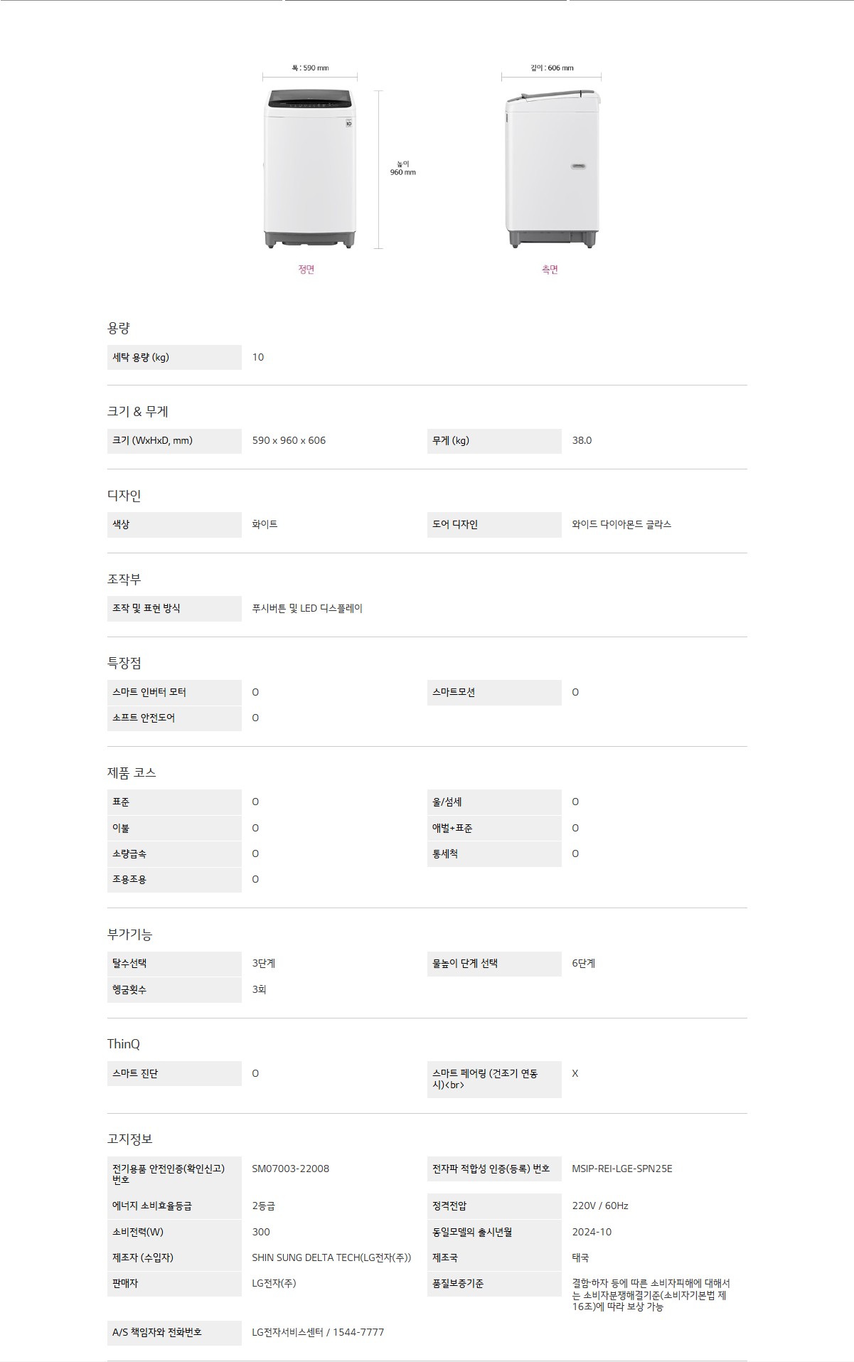 세탁 용량 (kg) : 10