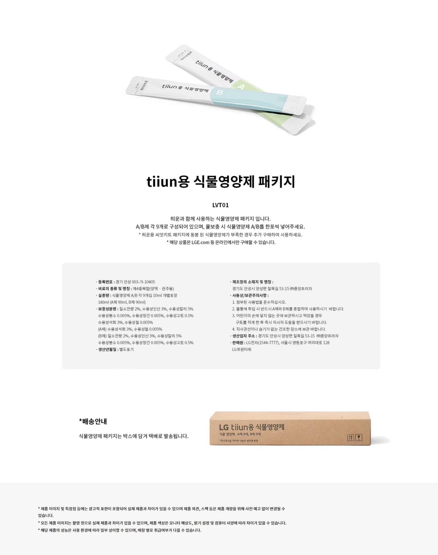 LG 틔운용 식물영양제 패키지