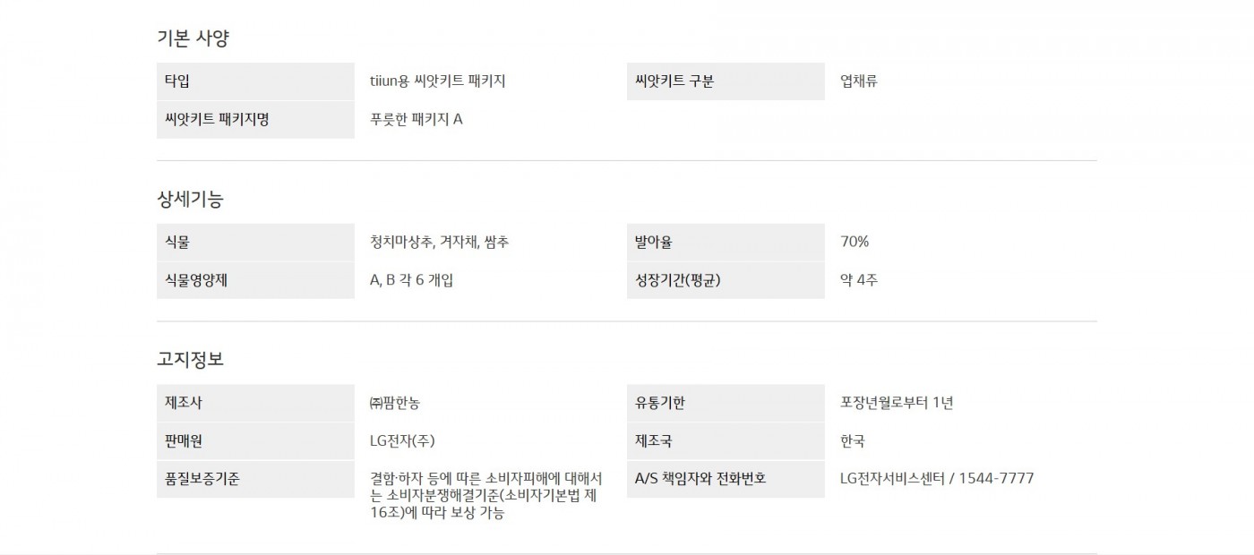 LG 틔운용 씨앗키트 패키지 (푸릇한 패키지 A)