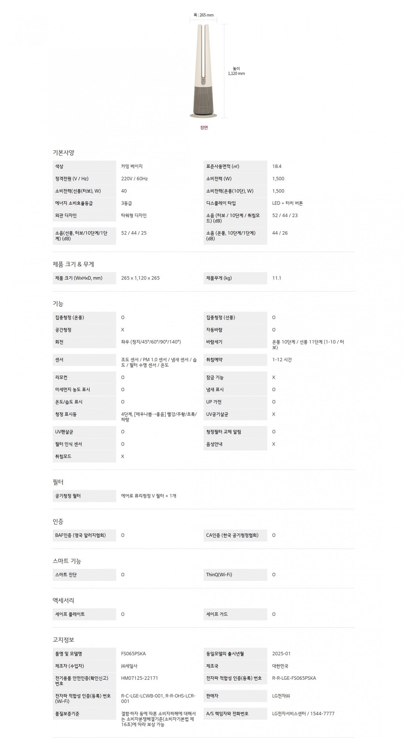 LG 퓨리케어 오브제컬렉션 에어로타워 Hit (온풍 겸용)