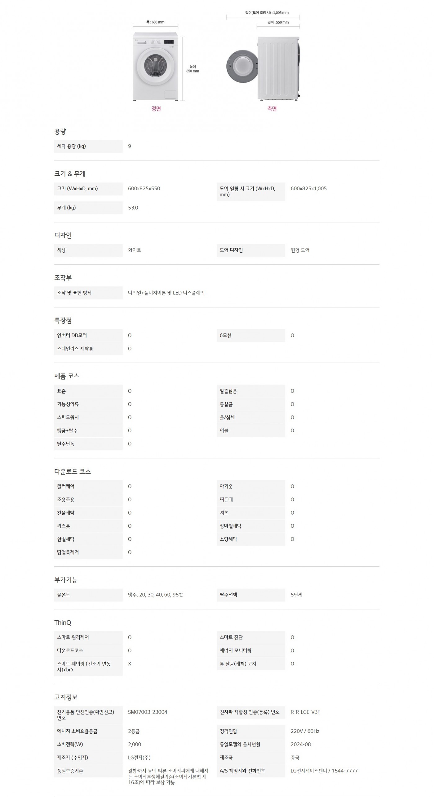 9kg 세탁 용량